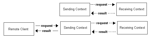 The terms "Local" and "Remote" are relative. In a complex application, any one of the contexts may play the role of a Local Context or a Remote Context. In fact, a context may even play both roles.